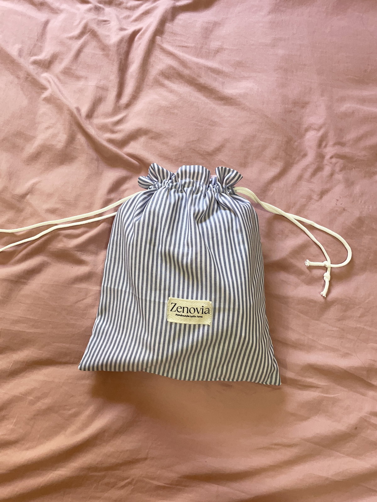 Bolsitas con frunce, prácticas y delicadas. Ideales para guardar y transportar accesorios livianos sin función de protección (sin guata interna).